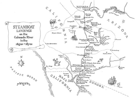 There were steamboats on the Colorado as well. Thanks to early gold discoveries north of Fort Mohave, by the 1860s steamboats were running from Port Isabel at the mouth of the river as far north as what is today Las Vegas cove.